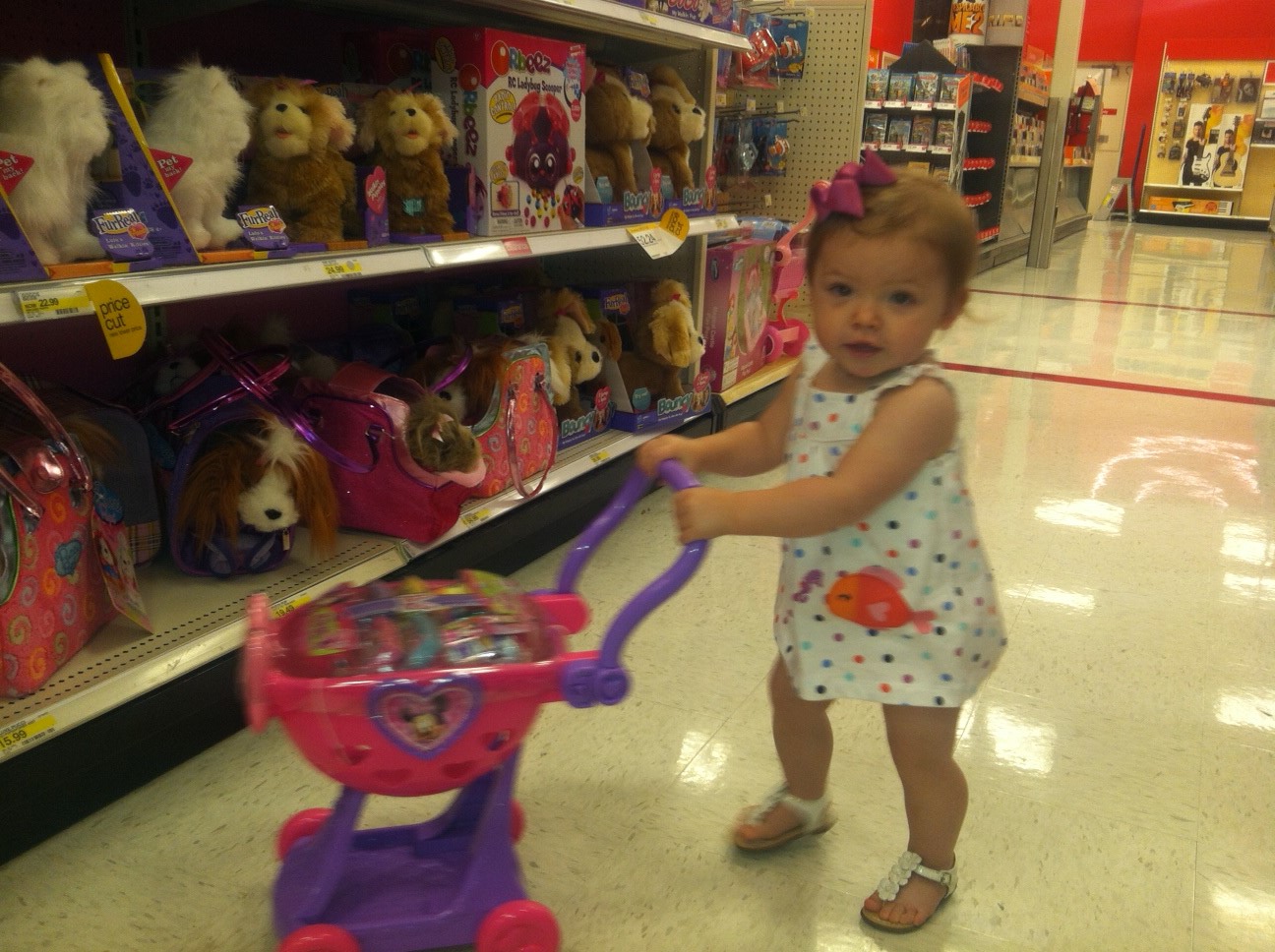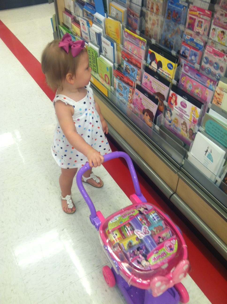 I posted this on Instagram the other day, but I couldn’t help share it here as well. Caroline and I had an outing, just the two of us, to Target and my little mini wanted nothing to do with sitting in the cart…so, we ventured to the toy section where I thought I could