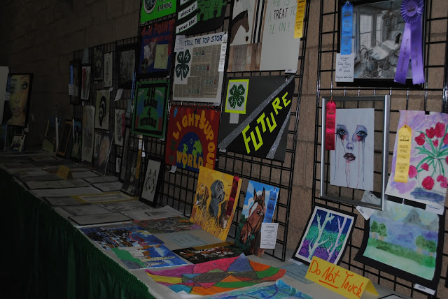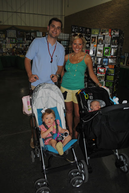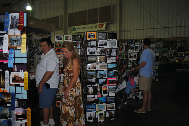 We met Mimi and Pappy at the Williamson County Fair right afternoon naptime for the girls so they would both be in prime time fun mode…or so we hoped. We started off the day touring the inside events, and walked through the exhibits to see the ribbon winners for photography, paintings, quilting, and all the yummy farming and food winners, too.