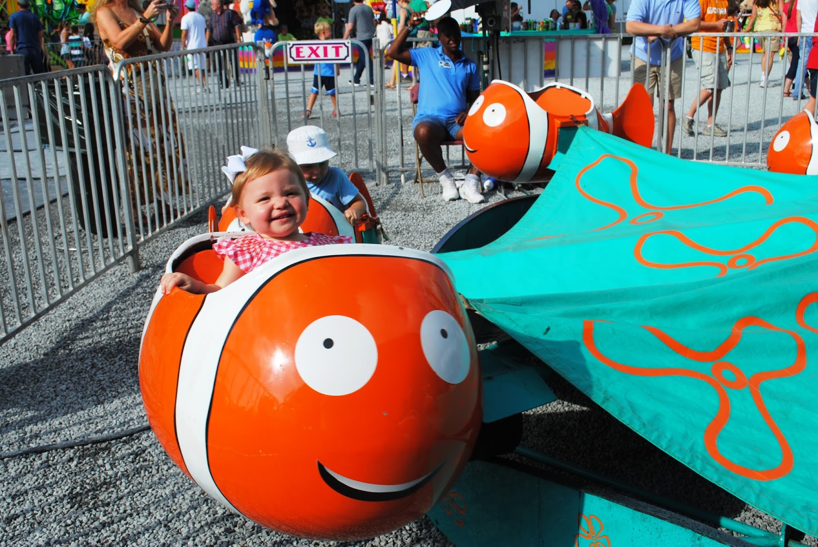 I was SO excited to let Caroline have a turn on some of the rides while we were there…of course she barely made the height requirement, but seeing as how she did so good at riding the carousel a few weeks ago at the zoo, we decided to give it a go. Needless to say, she LOVED it!! Nemo was up first and then we took her to the boats…honestly, this was the best part of the day.