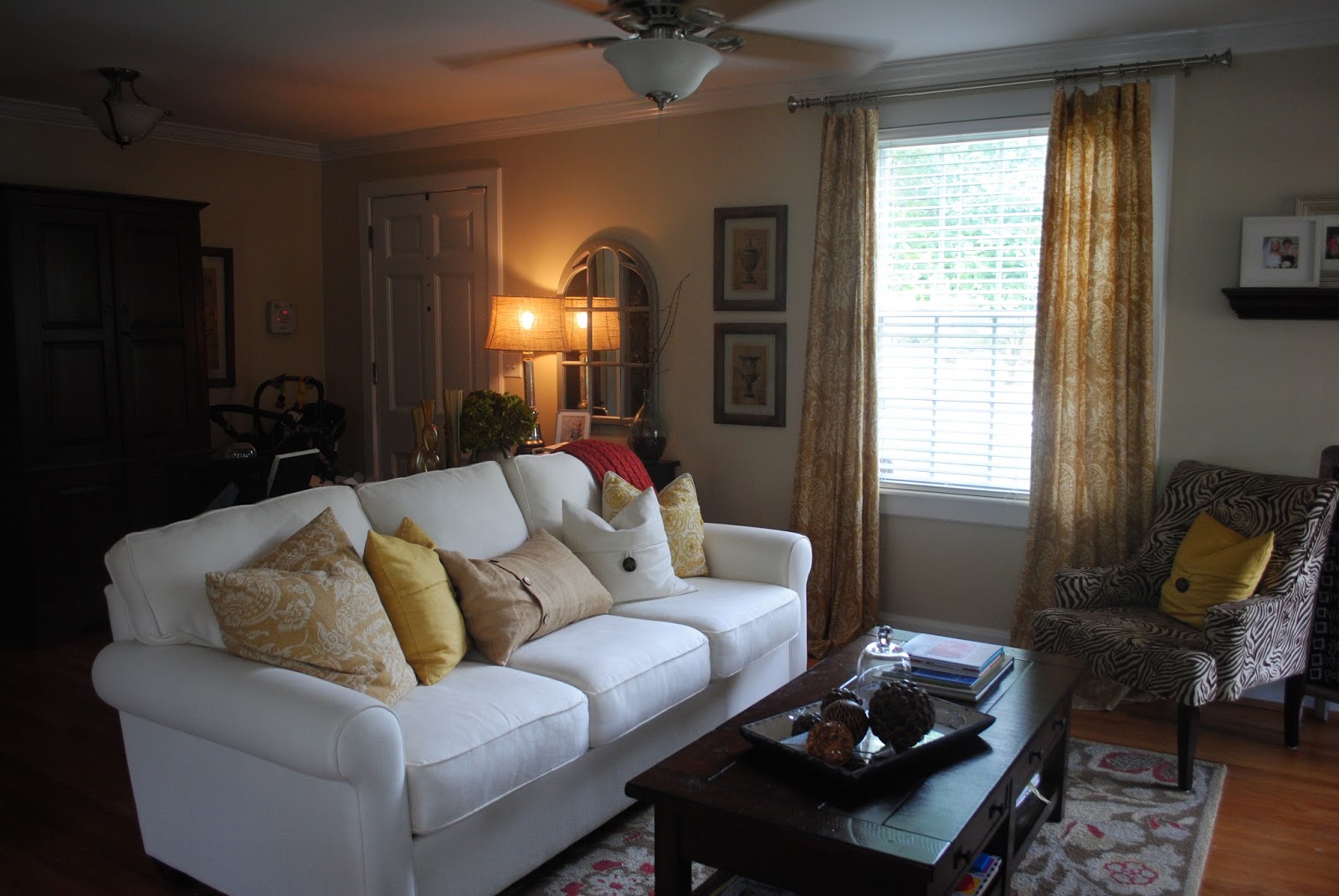 Couch, Coffee Table, Rug, Pillows/Inserts, Curtains, Lamp/Shade: Pottery Barn