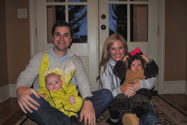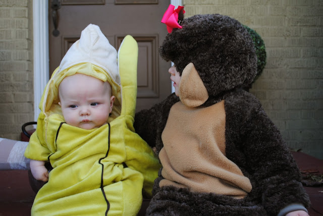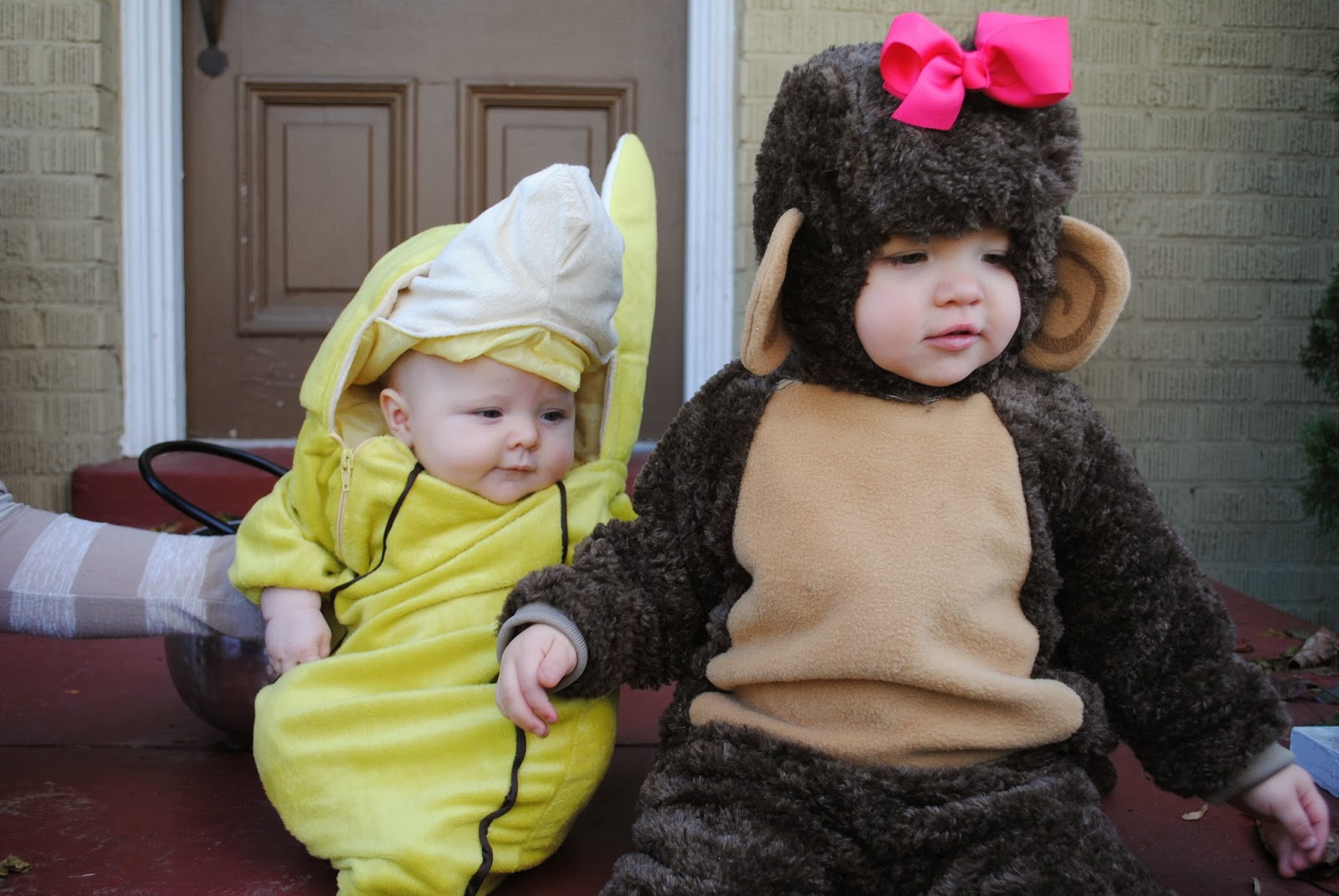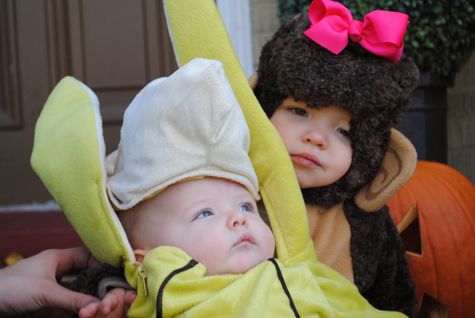 My girls will hate me one day for the “matching” costumes, but there is simply nothing sweeter than two babes dressed up in costumes that coordinate…introducing my monkey and banana.