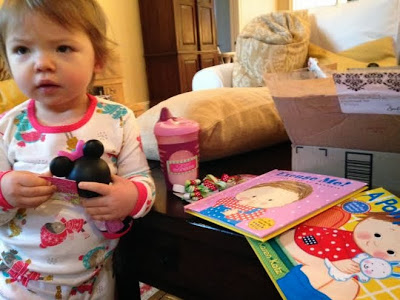 Delivery day came for Miss Caroline early this week, as well, and it turned out that Mr. Owen (and Colleen from Meet the Sullivans) were CC’s savvy shopper. The box was packed full of the sweetest, most thoughtful presents with Minnie Mouse…both Owen and Colleen obviously know what my girl goes gaga over!! đ