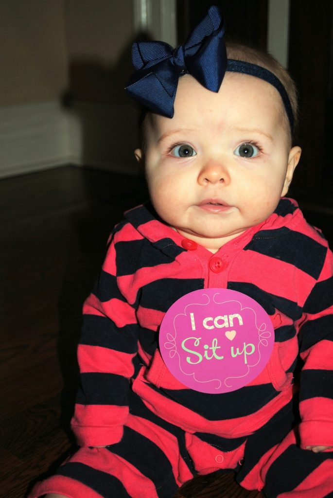 I love her little stickers! The "I can sit up" sticker is just too cute! Hope you can get some sleep soon!!