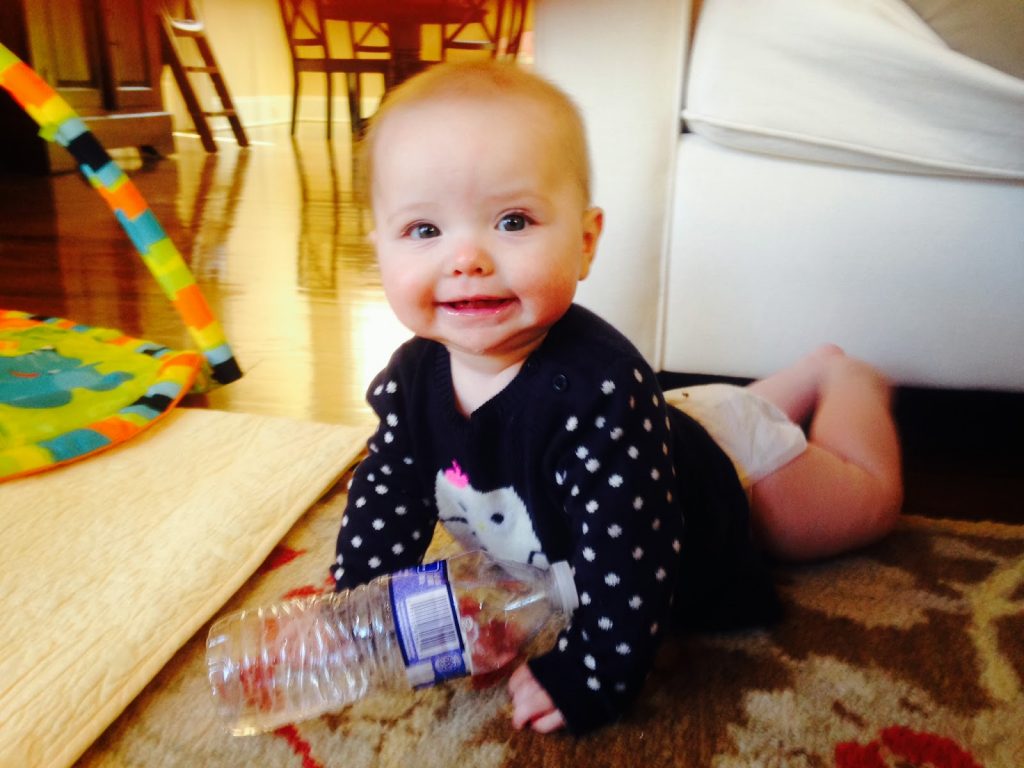 Exercise is Good for the Soul. It took me a bit to realize this game changer, but when I put a pillow under your jumper you go nuts…my little petite peanut, you still can’t reach the floor so you need a little assistance, but now you jump like crazy!! And you absolutely love it when big sister Caroline pushes it so you go higher. You are also starting to get up on your hands and knees and I think you are inching closer to crawling… you get up on your hands and then slide around on the floor trying to figure it out. You love to slide backwards, but we are working on forward motion ;).