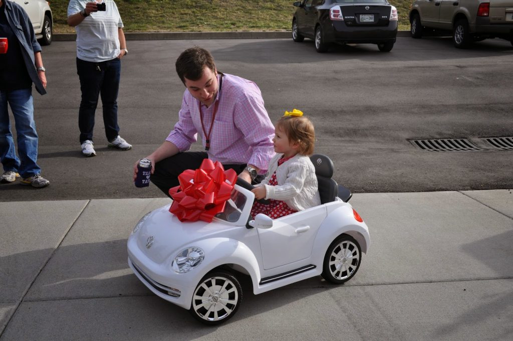 And as Pappy would say, the “anchor” gift…her new convertible VW bug to match Mimi’s