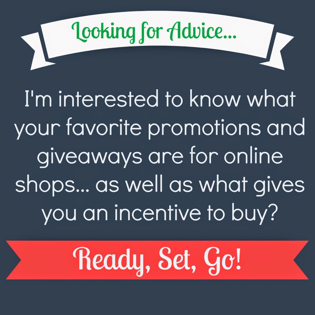 1. I haven't bought anything yet, but love your store and plan to do so soon! I am a big online shopper, and something big for me is free shipping. Or discounted shipping, even if it requires a minimum purchase. I hate paying shipping, even though I know it's necessary, so I always take advantage of those deals. Also flash sales. Like use code XYZ for the next 5 hours to get X percent off your order. It makes me buckle down and order right away, as opposed to mulling over an item for days or weeks. Hope that helps!