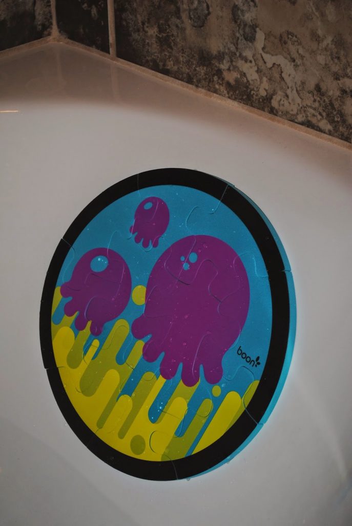 PIECES Foam Bath Puzzle: They stick to the bathroom wall…need I say more?? And they are mold/mildew resistant…yes! made for toddlers and seem to help us get the hair washing component of bath time completed without tears…thank heavens! Available online at Amazon and BuyBuyBaby for $9.99