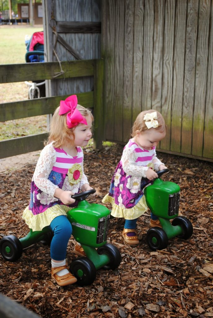 This past Saturday, Jeff, Mimi, Pappy, and I got together bright and early Saturday and took the girls to the infamous Gentry Farms Pumpkin Patch for a fun fall, weekend adventure. We were lucky enough to beat the crowds and arrive right as they opened so we could make sure to do everything before it got too crowded.