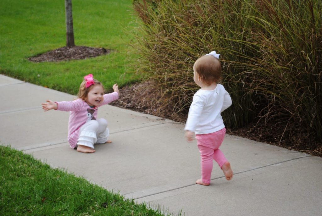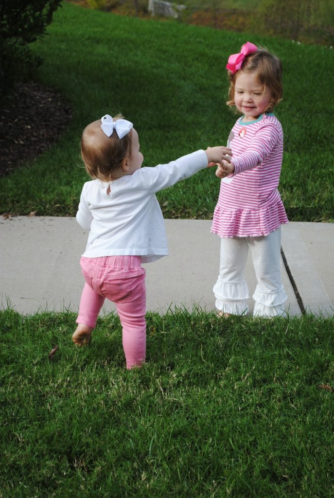 Oh my gosh, this is the sweetest!!! They are the most adorable (and happy) girls I have ever seen!! It must be amazing to watch them together! You better watch out, Momma…they are going to be trouble together someday!! 😉