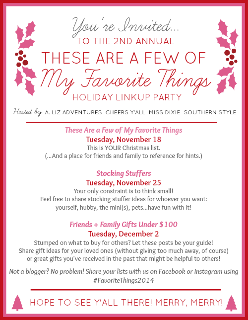 Holiday wishlists are popping up everywhere these days and I have definitely found some perfectly happy items to add to my wishlist from all those fabulous and fun holiday emails and marketing blasts from retailers… today, I am linking up with the fabulous ladies below to show off a few of My Favorite Things I’m asking Santa for this Christmas…