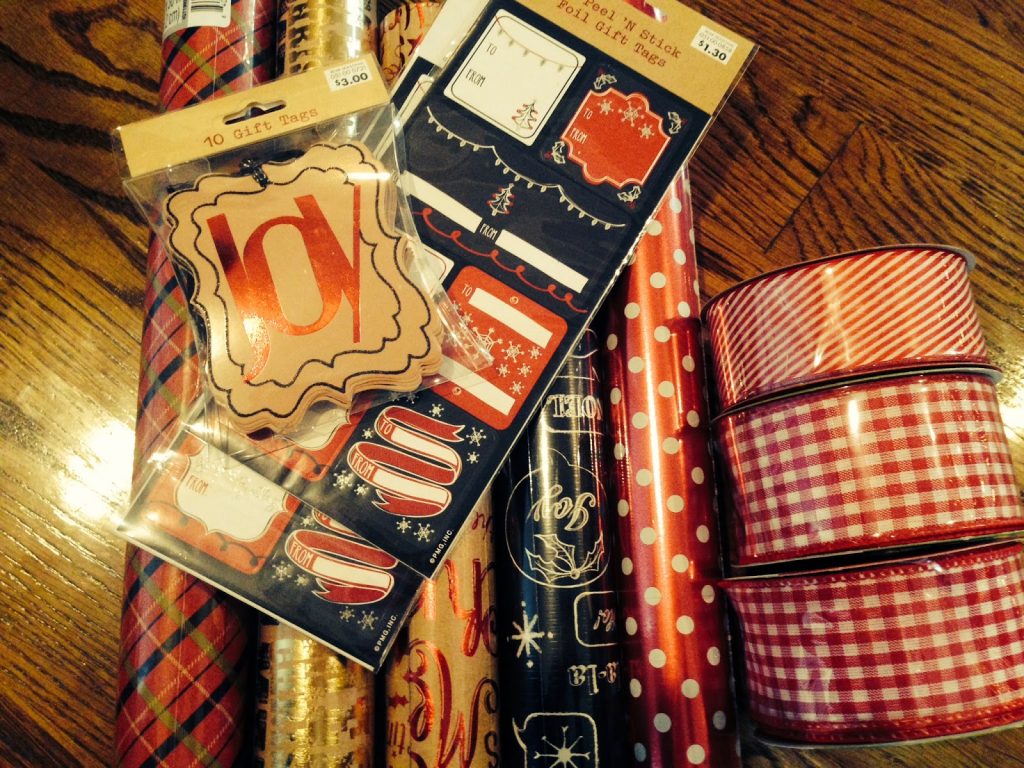 Every year, I come up with a theme AKA color scheme for our packages…this is a habit that stems from a mom who is notorious for delivering the world’s most decorative presents… yes, she is famous and hers always win. Last week, the girls and I stocked up on our gift wrapping supplies at our favorite red store marketplace/heaven/every mom’s favorite place and I think our gifts are going to look fun, festive, and a little homespun.