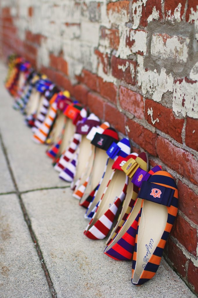 Check this out…below are the navy and white striped flats. They also offer additional bow clips with your school’s logo, and voila–a perfect gameday staple!