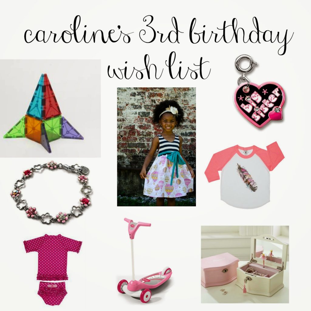 i’ve been racking my brain and stalking the aisles of our favorite stores in the efforts to find caroline some fun, yet educational and practical items for her upcoming birthday celebration. of course, you have to throw in one or two (or however many) fun gifts and goodies, but we’ve made a list and checked it twice and i solicited miss priss’ opinions on what she wanted and this is what we came up with… some from us and some from our dear friends and family. i’m always using other’s gift guides to influence my own, especially once they tell me something has been a big hit so for the blogging world’s share it mentality, i am forever grateful!