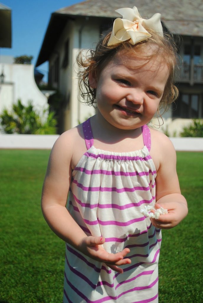I hope these little tidbits I remember always, just so I can tell you once you’re older, such as how you call granola bars “BBQ”, how you beg for Chick Fil A every Saturday so it’s become a weekly tradition, how you despise having your teeth brushed, but will do it if we sing the ABCs, how much you love popcorn and ask to eat it for breakfast, how you like to play doctor and give me shots in the arm while saying “it won’t hurt baby, don’t cry”… the list of funny little nuances goes on and on my little darling. Right now, your favorite movie is “Pocashontas Germy” (AKA Pocahontas II), your favorite morning treat are daddy’s homemade pancakes (but only when he puts blueberries in the batter), and how you hate it when we turn on the gas fireplace.