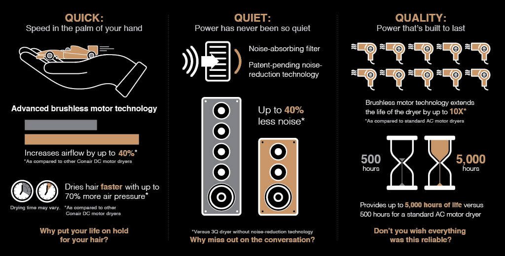 The thing I noticed as soon as I turned it on the first time was how quiet it was… they say it’s 40% quieter, which is AMAZING when you’re trying to tiptoe around sleeping daddies in the morning or napping babies during the afternoon. It also utilizes more air pressure at a lower temperature to help prevent heat damage which is another constant in my world… between long styling sessions and color process, it can takes its toll. Conair also mentions the lifetime for this product is significantly longer than other traditional dryers so I am hopeful I won’t be replacing this one anytime soon! P.S. the ionic technology doesn’t hurt either… hello to less frizz, even in humid Tennessee weather!!! Learn more about the 3Q now