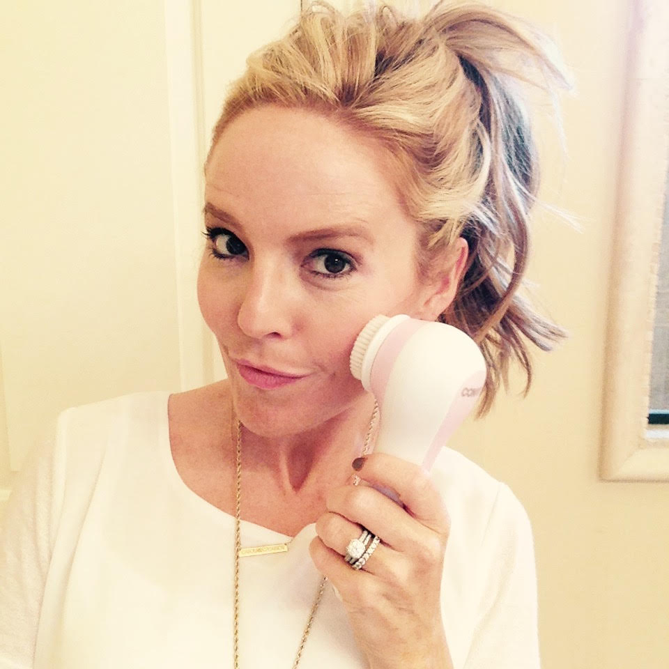First, let’s start with the True Glow Skincare Solution. To be completely honest, do-it-yourself skincare can be intimidating, right?? From the moment I opened the box, I was enamored with this little gem. My favorite part is that it’s waterproof so I was able to use it during my daily shower routine and it comes equipped with an automatic even-cleanse timer that tells you when to move to another area of your face every 10 seconds… fool proof! Want more details?? It comes with a charging stand, is fully rechargeable {because I buy enough batteries as it is with my kids], and has 3 [low, medium, and high] speeds with two brush heads for face AND body… see, it’s a two-in-one so you’re not having to buy anything else to make sure your entire body gets good and exfoliated. Learn more about the True Glow here