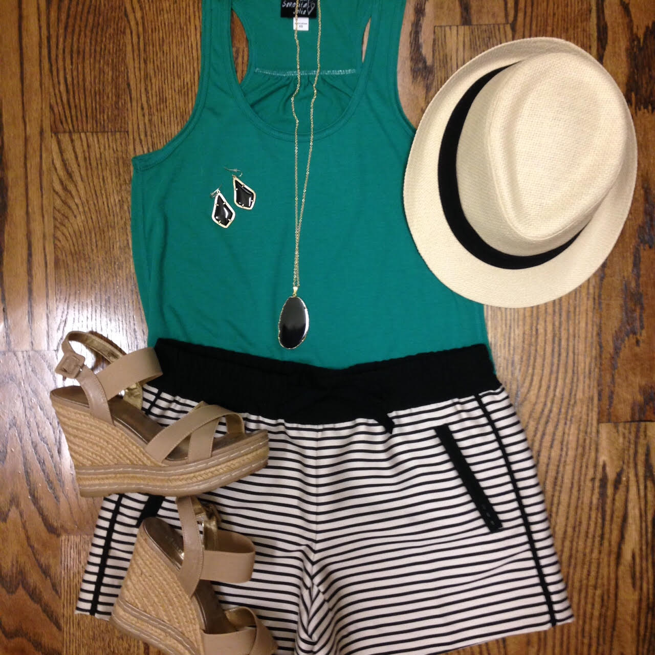 top || shorts (on major sale) || fedora (less than $15) || necklace ||