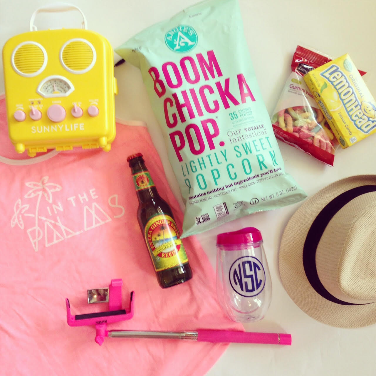 Ginger Beer, Boom Chicka Pop, Fedora & Selfie Stick would totally be in my bag too!