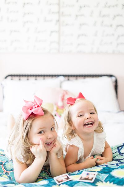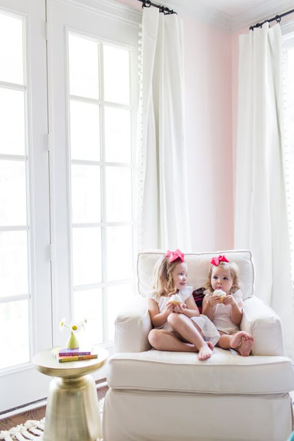 OH MY WORD. I had to revisit this post from the top over and over again before I actually paid attention to the bedroom details. The MINIS!!! I seriously don't think they could be ANY cuter. The picture with Caroline resting her sweet little face on her hands. Lordy, I love those babies. And the room. But seriously, those girls are the absolute cutest.