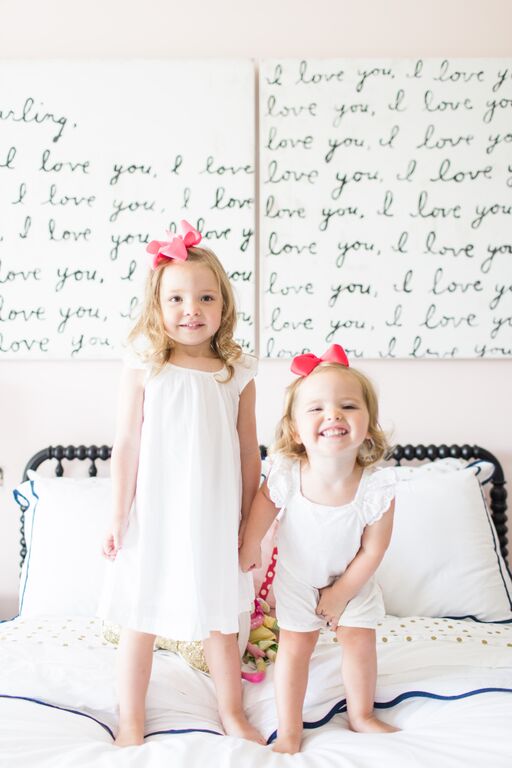 umm are you serious!? cutest bedroom reveal I think I have EVER seen. those girls are precious and I can't get enough of the pics. the canvases behind them are absolutely perfect!
