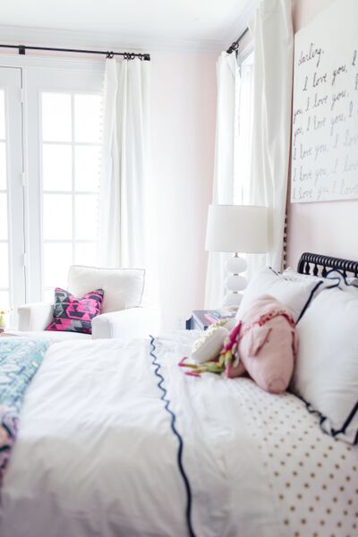 oh that bow pillow- LOVE! This is a beautiful space, great job! The girls are so adorable.