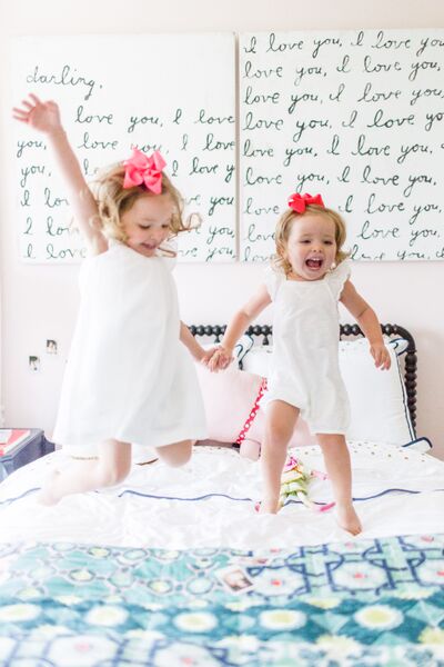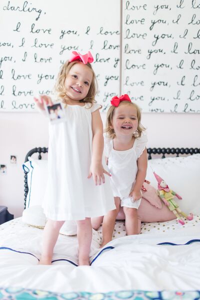 Love it – it's beautiful!! & that picture of the girls jumping on the bed… Best one! Please tell me you've framed it!? Lol!
