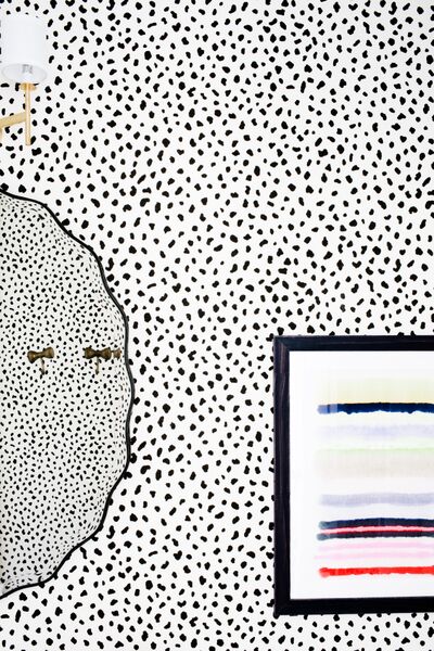 What an amazing room!! Can I move in?? And that bathroom wallpaper?! Hello!