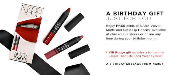 Sephora… I was lucky enough to snag an amazing lipstick duo from the NARS collection… I know they change their birthday gift randomly, but it’s worth signing up to get some favorite makeup and beauty goodies!