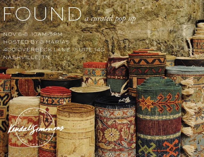 Love finding vintage, one-of-a-kind goods? Nashville friends… come shop with my fav interior designer Kendall Simmons AND the fabulous Brittney Forrister at FOUND, a curated pop up shop! They’ve traveled all over and have brought back unique finds from Istanbul and Paris… Turkish rugs and pillows, artwork, accessories, and vintage clothing, too! Details included in the attached graphic. I will be there with bells on!