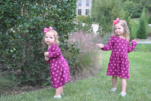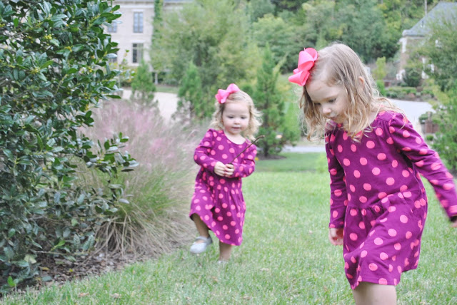 Adorable!! After living in Scottsdale the past five years, it still never ceases to amaze me how GREEN the South is!! We are loving our first fall here in Alabama, but I know that it won't be green much longer! Great pics, nice job blowing out the background! So much fun to read about two little ones so close in age – darling!