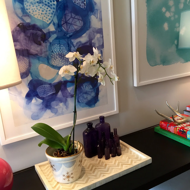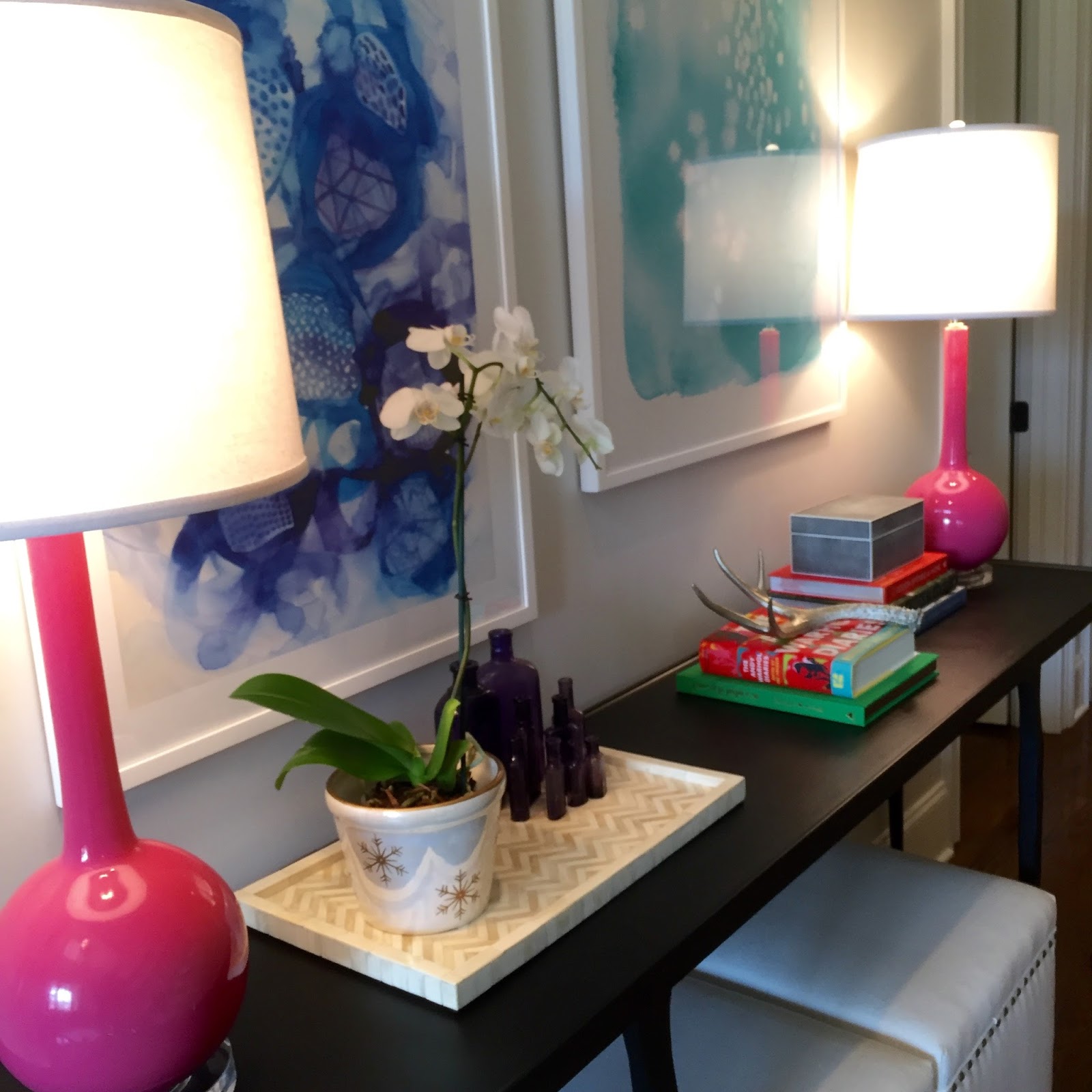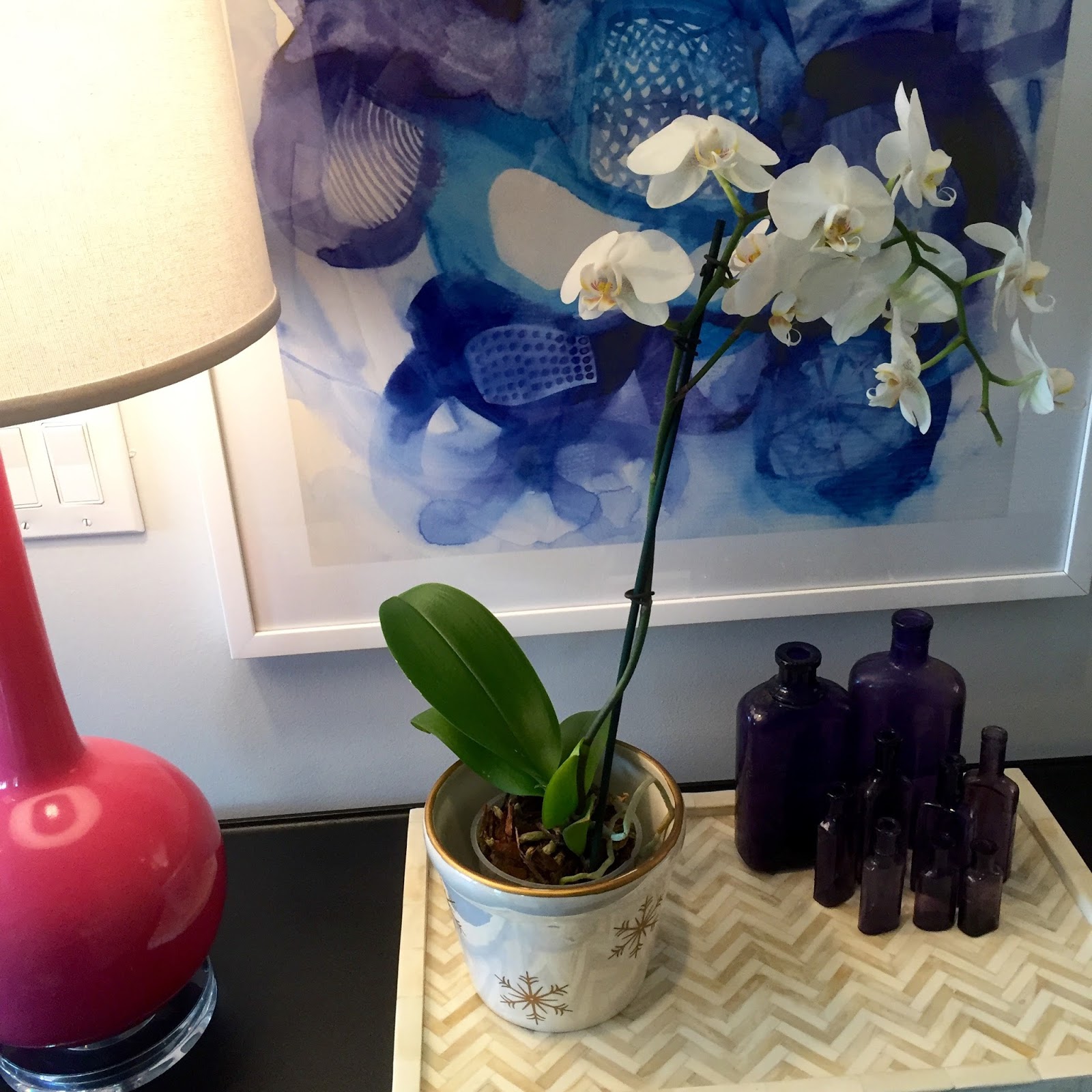 I second the ice cube trick–works like a charm! The orchid is beautiful and your pink lamps are GORG!!!
