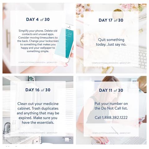 Have any of you out there in blogging land been participating in Emily Ley’s Simplicity Challenge? Today marks day 20 of the 30 day challenge and I have been so pleased to step out of my comfort zone and jump head first into this program. It’s shown me that small changes add up to big results and I am truly enjoying her tasks each day… favorites so far have been cleaning out my medicine cabinet, submitting our phone numbers to the do not call list, deleting old contacts/apps/information from my phone, and throwing out bags of random “stuff” and donating old clothes… what about you??