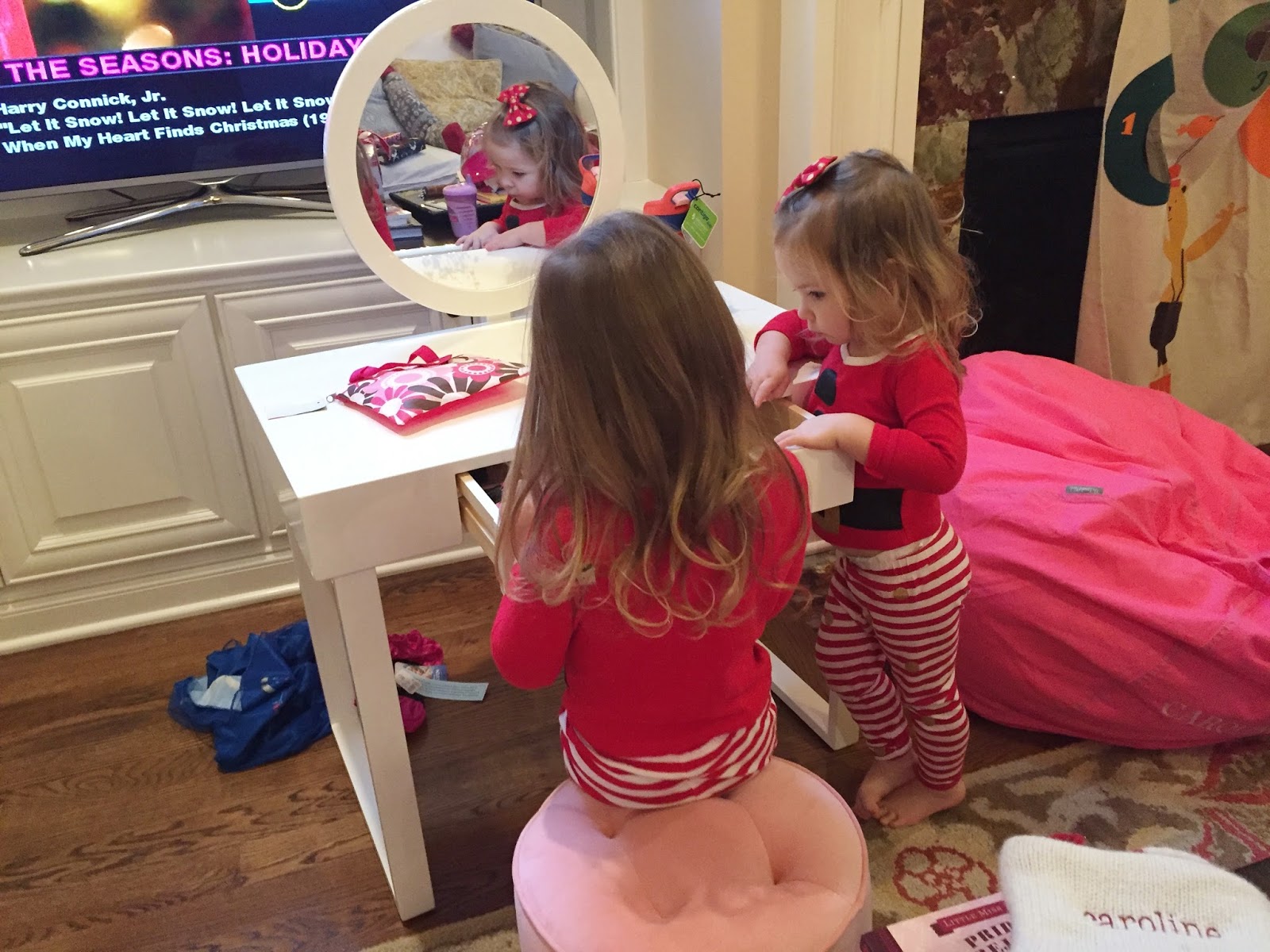 We came, we saw, we baked, we celebrated Jesus, I somehow convinced Jeff to dress up in matching elf pajamas with me, Santa brought the girls our beloved Lulu the bunny as well as a hoard of other goodies, and we spent time with both my side of the family and Jeff’s mom came to visit us for the holidays… all in all, it was a healthy, happy, and very fulfilling Christmas season!