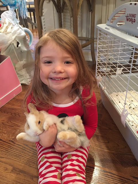 The picture of her holding the bunny is SO cute!!! My parents got me a bunny when I was in little and I loved that thing!!! I love y'all's matching pj's, so sweet.
