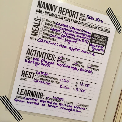 So, where are we today?? We are a mere 4 weeks in to our new nanny placement, but Kara has been a DREAM to have here with our girls. She’s engaged, excited, and plans so many fun lessons and outings with my little ladies and both Caroline and Carson are thrilled to have her here. She’s created Reward Charts for each of them to work on cleaning up, being kind to others, etc so that they earn trips to the jumphouse, ice cream store visits, etc. and we have a Daily Check-In/Check-Out sheet that she fills out so that I know what they ate, what they did, how long they napped, etc.