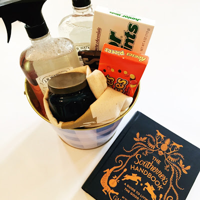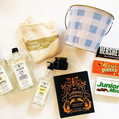 Presentation is everything, right?? I love putting together a fun little gift basket for friends, whether it’s for a special occasion, one to add a little sunshine to brighten their day, or a little homemade goody in celebration of a new home… I just assembled this together with some home essentials from J.R. Watkins, a TN tea towel, the Garden & Gun Southerner’s Handbook, packs of everyone’s favorite candy, a gingham pail from Target, and of course my most favorite candle in the world. Nothing fancy, but super cute and practical, too!