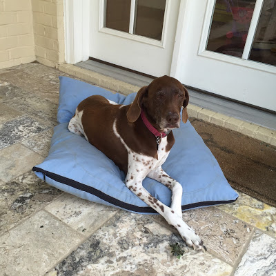 6:45AM: Caroline and Carson are UP! It sounds like a pure, chaotic circus once the little ones rise and shine… full-on breakfast time, chasing them down to take vitamins and brush their teeth, make their beds, etc… it’s a tornado, but we usually manage! Then it’s a little bit of TV time as we get Lulu out, and let Chloe out in the yard.. yes, remember our dog Chloe… the one you laugh about because I never “show” her. Well, look there she is! She truly does exist.