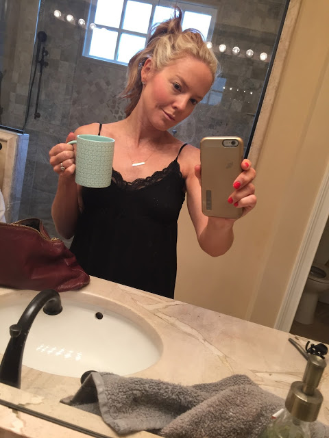 6:15AM: Wake-up time! I would like to say I wake up chipper and perky, but that would be a blatant lie. Basically, my eyes are exhausted, my husband is too loud while he gets ready, so I figure I better get up before the girls do. Instantly, I make the bed [because an unmade bed makes my type-A self crazy], brush my teeth, make myself a HUGE cup of coffee and then hit the shower so I don’t scare anyone.