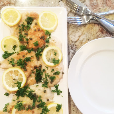 Easy Chicken Piccata via Noshtastic. A winner from everyone at our table, it was ready in less than 30 minutes and I had every ingredient [less the capers] already in our pantry!
