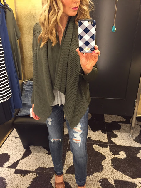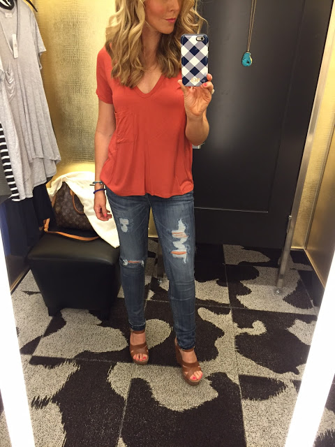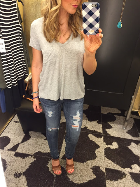 So cute!! Love the dressing room pics because it always helps to see the items on a real person!! I'm so excited about those comfy v-neck tops!