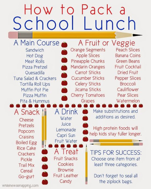 Let’s face it, those Pinterest-perfect lunch ideas are fun to look at, and I’m guilty of pinning them with the best intentions to make lunches that look great, but practicality comes back into play with week two of school so this mama usually sticks to the components I know will get eaten. I did find THIS PIN, which is a step-by-step guide of how to pack a school lunch, which comes in very helpful when you’re trying to throw things together before school on days where your imagination is less than exciting.