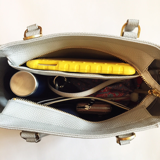 When I find something I truly love, I cannot wait to share it with you guys... case in point, this Mini Tote from their latest collection. When I saw the reviews from other on-the-go ladies like myself, I couldn’t wait to test this pretty new accessory out. It’s a tote designed for about-town women, who need more than a purse, but less than a giant carryall. Mine easily holds an iPad, a few pens in the designated loops, a water bottle with built-in koozie to prevent spills, a small cosmetic bag, business cards, wallet, phone, keys, and more. The best part is the detachable strap so I can carry it as a crossbody style as well. My color is the Cement Grey Python, but I equally love the Bleeker Blush and Dagne Blue options… a little small or big for your liking?? They have a ton of other styles, sizes, and colors to suit your needs!