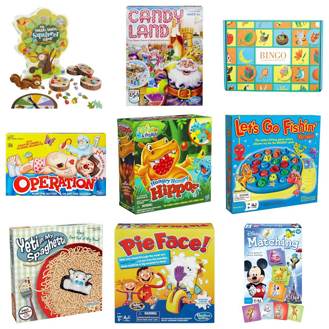 Candyland | My favorite board game growing up, this was a must to add to our collection of board games… they have a few varieties, but I love the one that still uses the actual cards with the colored squares on them, so be sure you’ve found the right one! You know the drill… select a card, move that many spaces, and first one to reach the candy castle wins!!