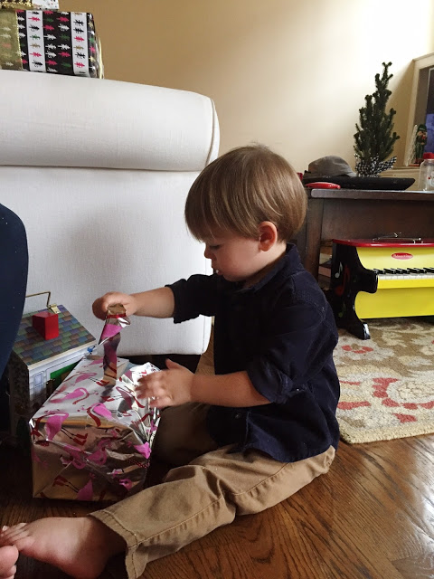 Christmas Eve morning came and Aunt Alex came over to exchange presents with us and the girls… we sure do love that tradition!! Then Jeff and I headed to the hospital to check-in on the new parents before coming back home to get ready for Christmas Eve Church. I’m pretty sure Carson was entertaining for all seated around us. We then headed to Mere Bulles for take in dinner… finally, we came home to open presents from the grandparents before settling in for a long winter’s nap!