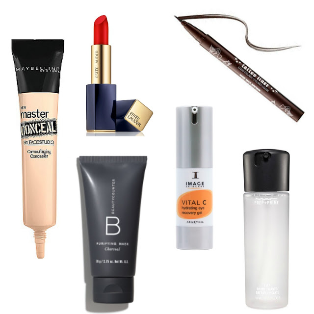 Let’s talk all things beauty and skin first… especially since we all are trying to find the right ways to age gracefully, to help lessen fine lines and wrinkles, and to get that makeup that stays put and doesn’t fade! First up, the Mac Prime and Prep Fix–keeps my makeup lasting all day long and my skin stays hydrated = essential. The famous Kat Von D Liquid Tattoo Eyeliner… easy to apply for non-liquid lovers like myself and no need for reapplying! When it comes to lips, I’m a sucker for the Estee Lauder Pure Color Envy Lipstick [in Drop Dead Red]–the hue is bright which brings color, it lasts, and I love the high-shine hues. Finally, a drugstore find that is taking over my makeup drawer is anything in the Maybelle FIT collection, specifically the Master Concealer. At under $10, its full coverage actually covers dark under eye circles and discoloration and I like it more than any other brand I’ve tried. Other skin favorites include the Beautycounter Charcoal Mask and Image Skincare Vital C Eye Recovery Gel.