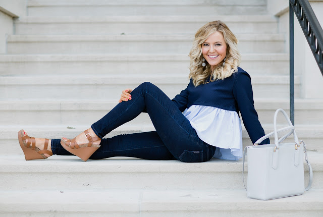 This peplum is too adorable! So perfect paired with the skinny jeans and wedges!