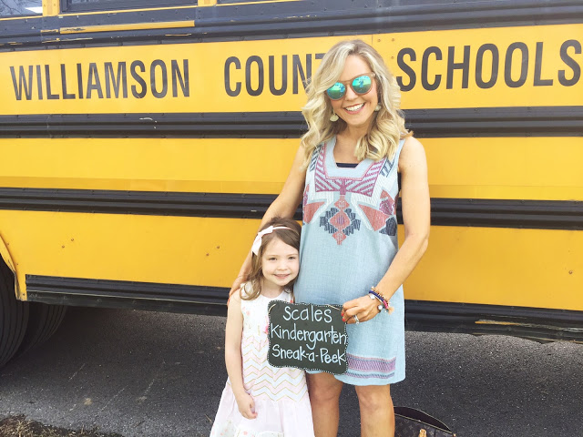 Loving that peachy pink cover up! I can't believe Caroline is old enough for kindergarten!! How fun that you got to do a sneak peak and she loved it.