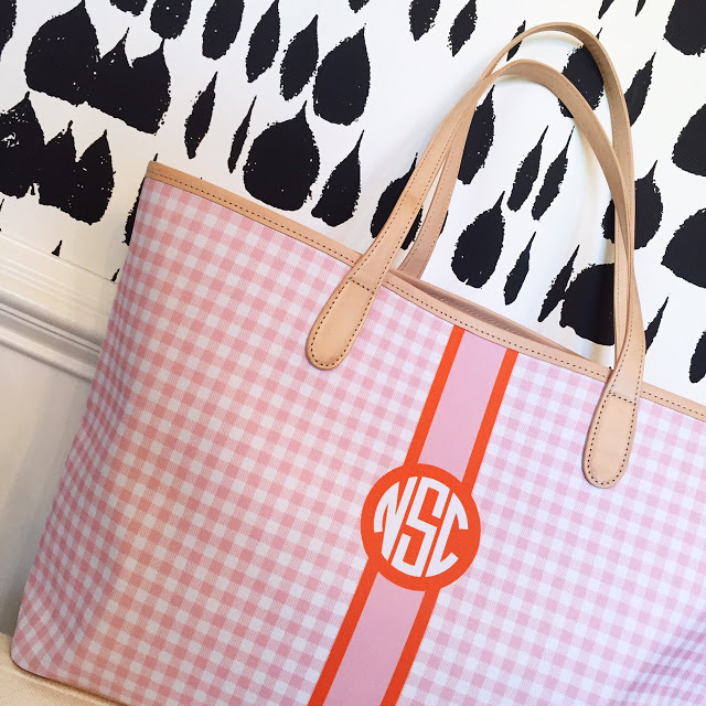 I recently partnered with my friends at Barrington Gifts to design the PERFECT tote bag for spring! I selected the St. Anne Tote, then chose the Blush Gingham Pattern and Equestrian Stripe, Circle Monogram, and Light Leather trim.