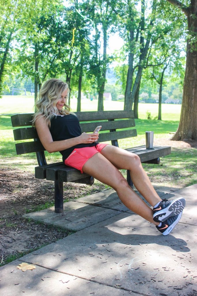 For the bottoms, I’m sporting the Serenium II Pocket Short in Coral. I love the bright pop of color to my otherwise neutral ensemble and the fit of these are incredible… high-hip zipper mesh pockets for storing your necessities, with an adjustable-rise elastic waistband, and the relaxed 3″ scalloped leg is a great length for staying comfortable [and cute] during workouts. P.S. these run TTS and come in a variety of colors, too.