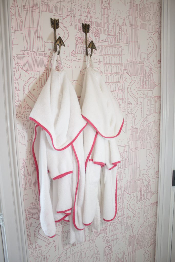 Next up, the bathroom, otherwise known as the water closet, which I prefer AND sounds a bit more elegant, so let’s just stick to that terminology for now… get ready to take in more brightly colored and print happy cuteness!